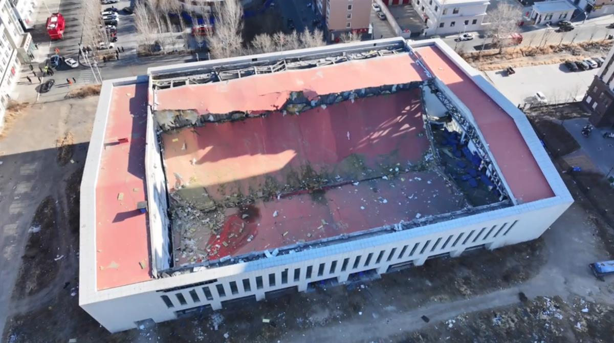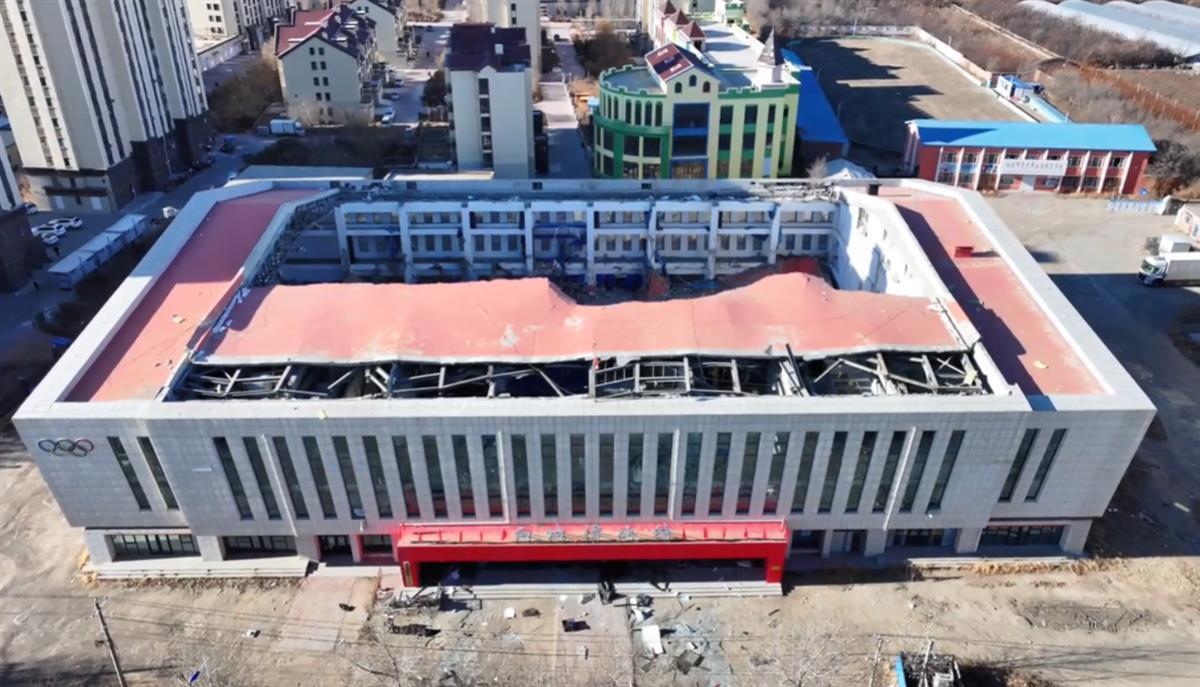 屋顶发生坍塌的白城滑冰馆 (图源:网络)